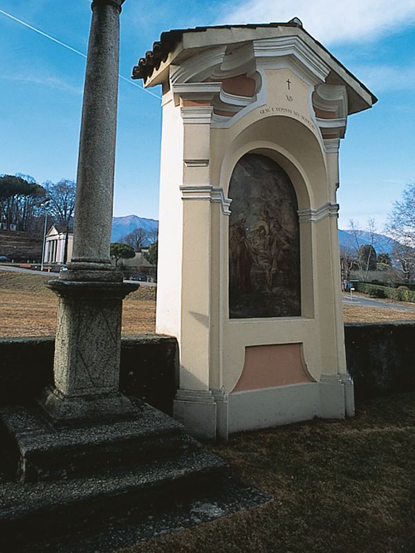 La prima delle due cappelle in fondo ai viali è opera di Domenico Gilardi. Il dipinto rappresenta «S.Martino e il povero» ma vien comunemente detto di «S.Pietro in prigione». Esso è firmato da Emilio Ferrazzini che ha restaurato la cappella nel 1934. La pittura originaria era del professor Barchetta di Barca. La seconda cappella, detta della Natività, porta invece l’affresco della Sacra famiglia.