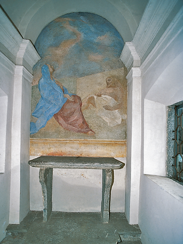 È una costruzione col tetto di coppi a quattro spioventi. Le pareti esterne furono affrescate dal pittore Bartolomeo Rusca di Arosio, mentre l’affresco sulla parete interna è del Petrini di Carona. Antonio Capone, «feraro», eseguì la porta in ferro nel 1723.