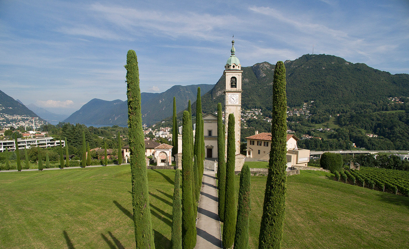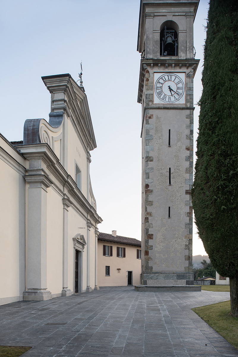 Nel 2018, il Municipio di Collina d’Oro si è fatto carico del completo rifacimento del sagrato e dei due viali d’accesso alla chiesa su progetto elaborato dallo studio Sergio Cattaneo Architetti SA di Bellinzona su precise indicazioni dell’Ufficio cantonale dei Beni Culturali (UCB). I lavori sono stati eseguiti dal gruppo Cellere di Castione mentre che la ditta Spinelli SA di Massagno ha curato l’illuminazione dei viali. Per la copertura del sagrato, ampliato nella parte centrale, sono state utilizzate lastre di maggior spessore rispetto a quelle precedenti, risalenti agli anni ’80 del secolo scorso. La particolarità dei nuovi viali, oltre che da un’illuminazione “discreta”, è data dal rivestimento non più in asfalto, ma suddiviso in tre fasce: due laterali con dadi in granito e quella centrale con una pavimentazione drenante miscelata con resina bicomponente dello stesso colore del sagrato.