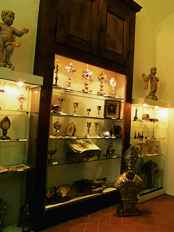 La piccola Sala espositiva è ricavata nel locale adiacente la cappella detta della Confraternita (ora con l'antico Crocefisso).